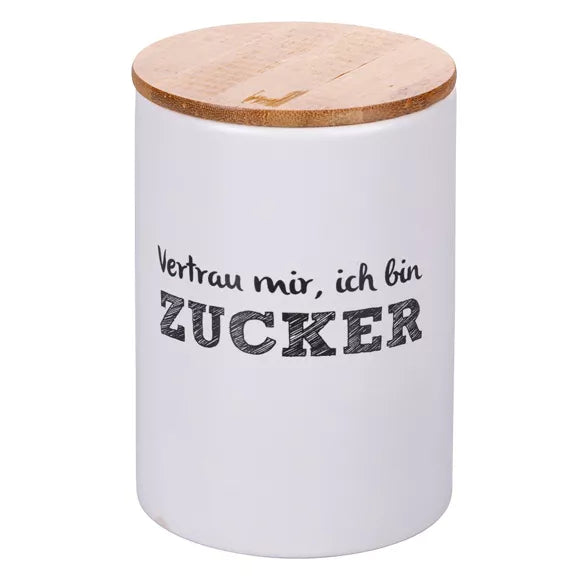 Entdecken Sie unsere weiße Zuckerdose mit 750 ml Fassungsvermögen und dekorativer Aufschrift. Der Holzdeckel ist mit einer Silikondichtung ausgestattet, die einen luftdichten Verschluss gewährleistet und Ihren Zucker vor Feuchtigkeit und unerwünschten Besuchern schützt. Genießen Sie stets trockenen und Klumpen freien Zucker. Diese Zuckerdose eignet sich perfekt zum stilvollen Servieren von Zucker für Kaffee oder Tee. Ein ideales Gastgeschenk für Einzüge von Freunden und Bekannten, zugleich ein dekoratives Element im Küchenschrank oder auf der Küchenzeile. Setzen Sie auf Funktionalität mit einem Hauch von Eleganz in Ihrer Küche.