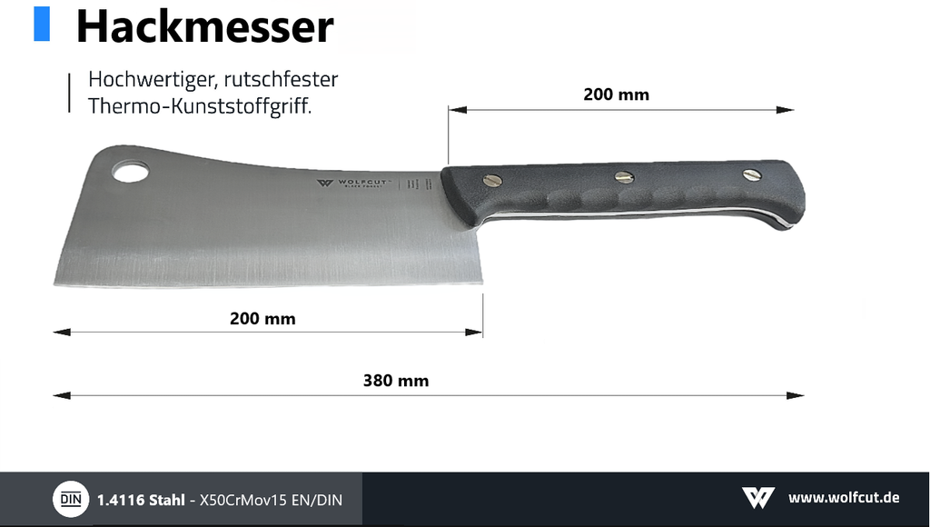 - Rückenstärke der Klinge ist Blockmesser ca. 3,0 mm, Hackmesser ca. 6,0 mm